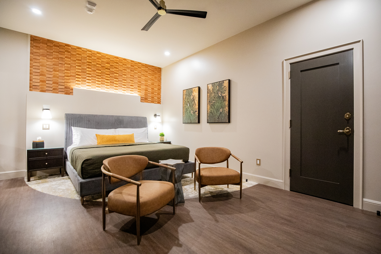 For those seeking an elevated experience, the Holcomb Suite offers pure luxury, where every element is thoughtfully curated to provide an indulgent escape. From the moment you step inside, you are enveloped
