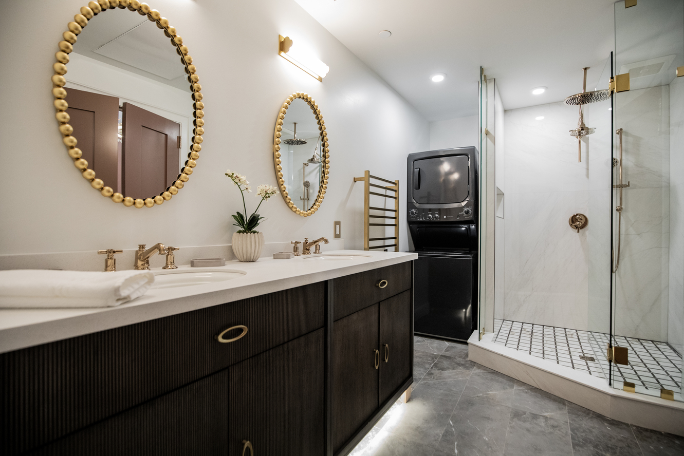 bed, a haven of comfort designed to ensure your nights are filled with unparalleled rest. The spa-inspired bathroomis a sanctuary in itself, featuring heated floors and towel bars that transform each morning into a luxurious, warming experience.