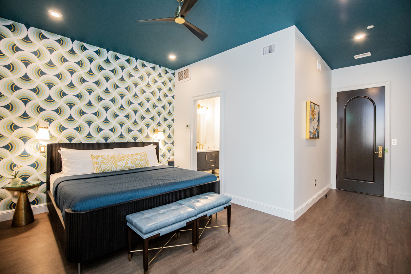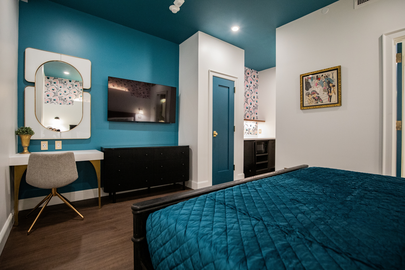 Our Standard Rooms are a peaceful haven, offering a seamless blend of luxury and functionality. Ideal for the discerning solo traveler or business guest, this room offers a sanctuary of calm and convenience. The plush king-sized bed, draped in fine linens and an in-room washer and dryer, ensures every need is met without disrupting your tranquility. The bathroom is a modern masterpiece with minimalist lines that echo the sophistication of Art Deco design.