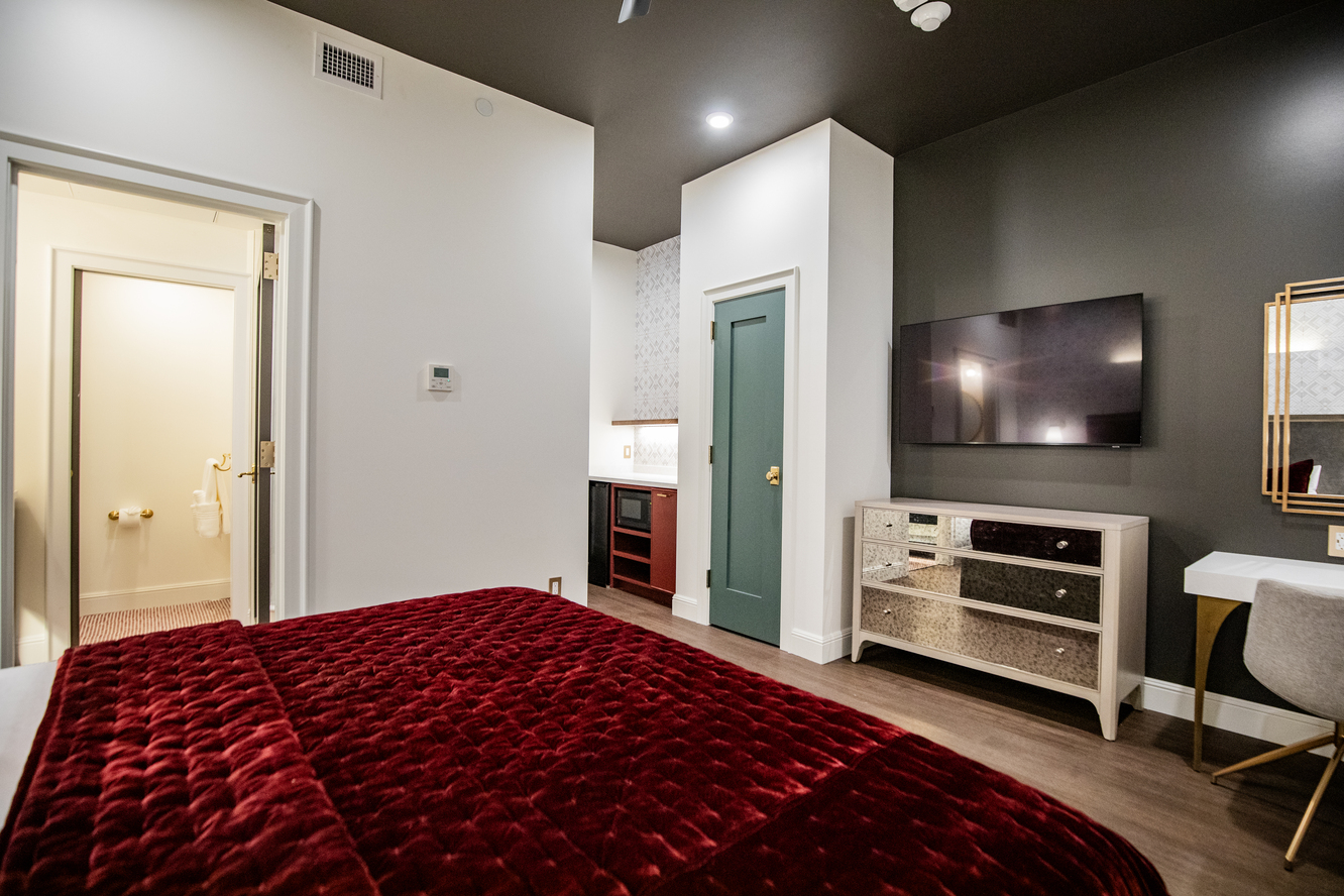Our Standard Rooms are a peaceful haven, offering a seamless blend of luxury and functionality. Ideal for the discerning solo traveler or business guest, this room offers a sanctuary of calm and convenience. The plush king-sized bed, draped in fine linens and an in-room washer and dryer, ensures every need is met without disrupting your tranquility. The bathroom is a modern masterpiece with minimalist lines that echo the sophistication of Art Deco design.